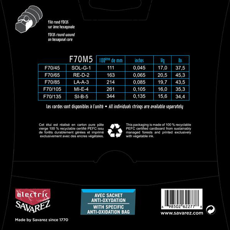 GALLI STRINGS® BASS JAZZ FLAT WOUND 5 STRINGS MED .045-.130 Filé plat en acier chromé sur une âme hexagonale. Les cordes GalliStrings® JF sont particulièrement douces au toucher, ce qui ne les empêche pas d'être puissante et d'avoir un long sustain. .045 - .065 - .085 - .0105 - .0130