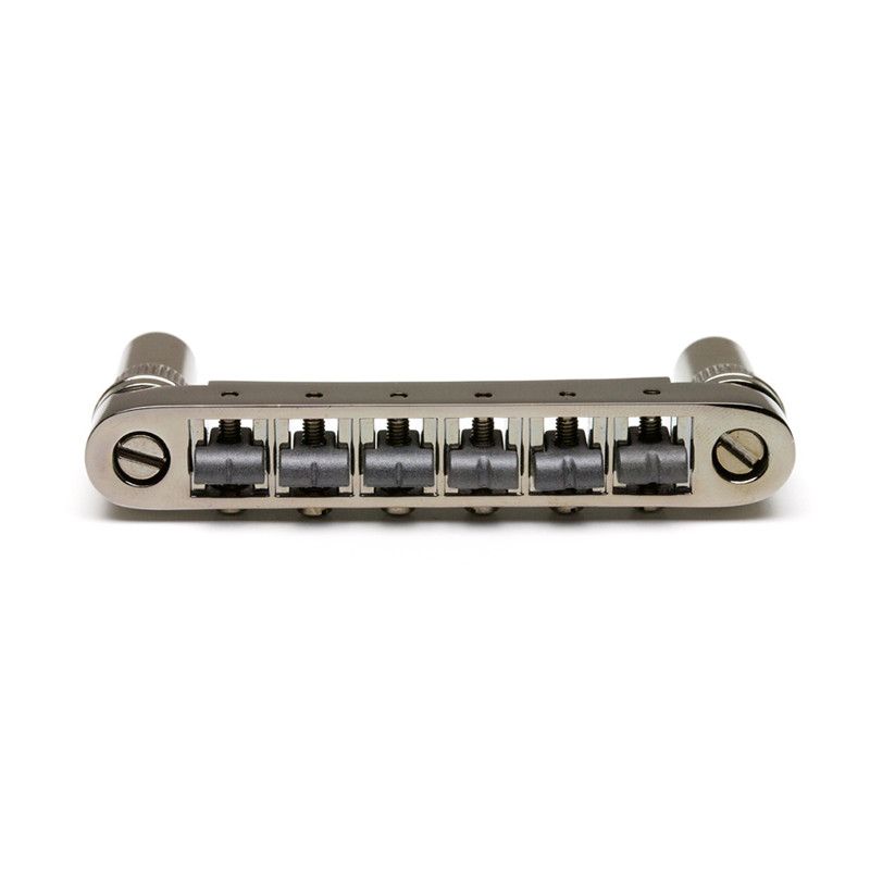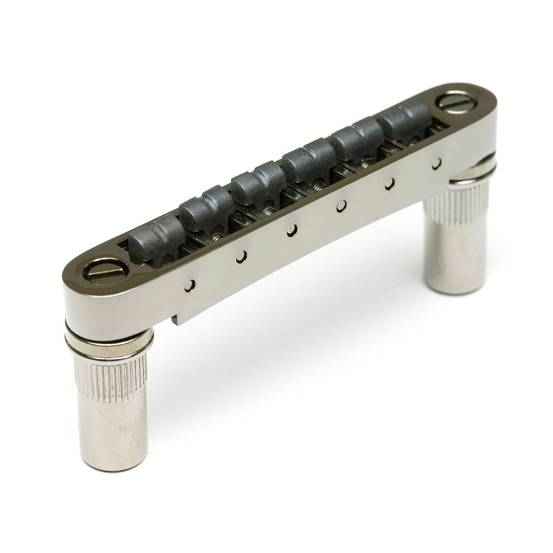 GOTOH® GE103B-T TUNE-O-MATIC BRIDGE 6mm METRIC POSTS NICKEL -Strings Spacing : 52mm (10.4 x 5) -Saddle Material : Hard Zinc -Posts Spacing : 74mm -Posts Thread : M8 -Radius : R300