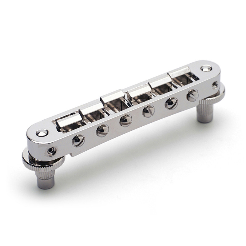 BRIDGE ABR-I STYLE FOR VINTAGE LES PAUL® WITH WIRE NICKEL -Bridge Material : Zinc -Saddles Material : Brass (No Notch) -String Spacing : 10.4mm (E-e : 52mm) -Studs Spacing : 74mm