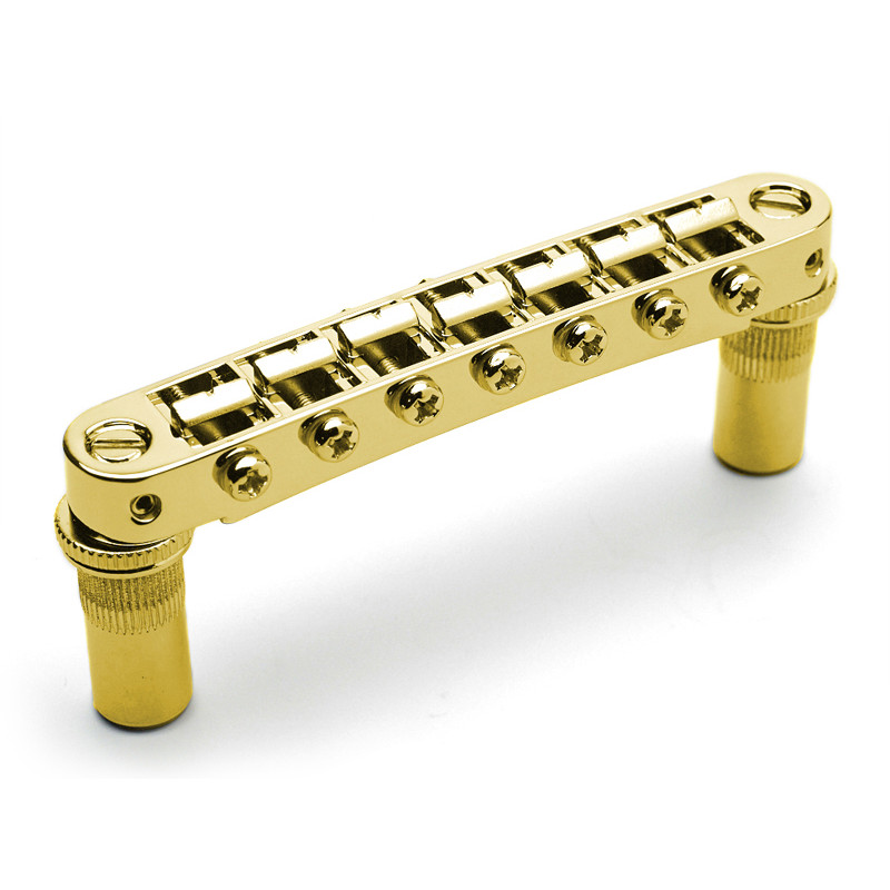 GOTOH® GE103B TUNE-O-MATIC BRIDGE 4mm POSTS GOLD -Strings Spacing : 52mm (10.4 x 5) -Saddle Material : Hard Zinc -Posts Spacing : 74mm -Posts Thread : M4 -Radius : R300
