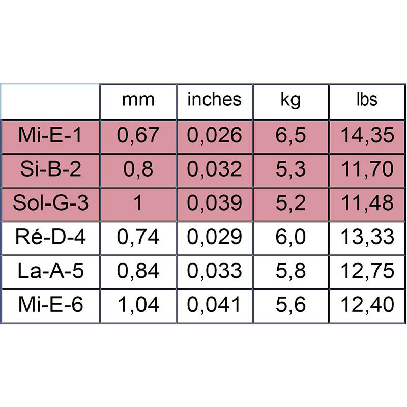 Véritables avancées technologiques, les jeux ALLIANCE CORUM et ALLIANCE HT CLASSIC inaugurent une ère nouvelle dans la guitare classique. Ils permettent d’explorer de nouvelles possibilités d’expressions et de sons. Brillance, projection, nuances, homogénéité des qualités sonores sur toute l’étendue de l’instrument. Un équilibre parfait. Les aigües : Mi.1...