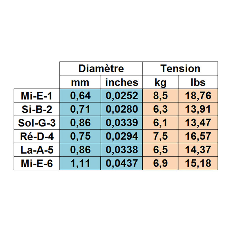 Véritables avancées technologiques, les jeux ALLIANCE CORUM et ALLIANCE HT CLASSIC inaugurent une ère nouvelle dans la guitare classique. Ils permettent d’explorer de nouvelles possibilités d’expressions et de sons. Brillance, projection, nuances, homogénéité des qualités sonores sur toute l’étendue de l’instrument. Un équilibre parfait. Les aigües : Mi.1...