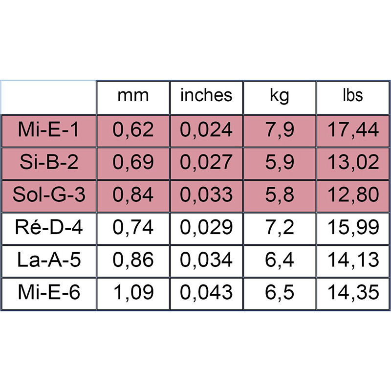 Véritables avancées technologiques, les jeux ALLIANCE CORUM et ALLIANCE HT CLASSIC inaugurent une ère nouvelle dans la guitare classique. Ils permettent d’explorer de nouvelles possibilités d’expressions et de sons. Brillance, projection, nuances, homogénéité des qualités sonores sur toute l’étendue de l’instrument. Un équilibre parfait. Les aigües : Mi.1...