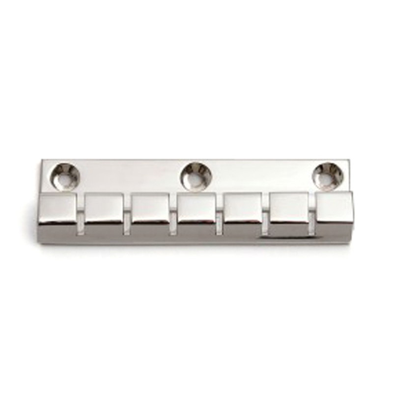 Solid straight bridge for lapsteel guitars, which is fixed directly to the guitar top with three screws. Size: 70x10x10mm, string spacing: 52mm.