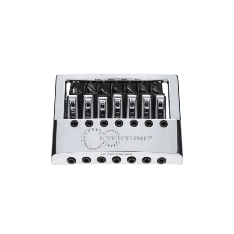 EVERTUNE BRIDGE F MODEL 6 STRINGS CHROME For Strat-style guitars. Ambidextrous. Every new EverTune bridge comes with a service pack. This includes an EverTune hex key (matched to the faceplate color), an extra set of action screws and a printed Owners Manual. If the installed set of action screws is 8mm then the service pack will have 10mm screws; if the...