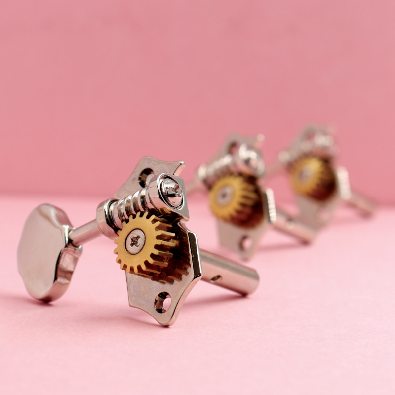 The original Roundbacks from Kluson! "Roundbacks" are closed type, maintenance-free tuners for modern 10mm pegholes. The special 18:1 gear-ratio allows for extremely smooth and precise tuning. Lowest tolerances and best manufacturing technology make the Kluson "Roundbacks" the perfect standard for modern tuning machines. for 3+3 headstocks Kidney Buttons...