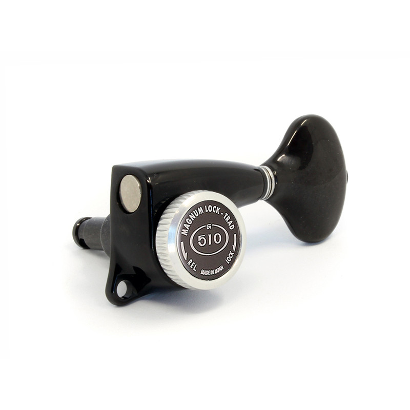 GOTOH® SG381 MG-T LOCKING MACHINE HEADS 3+3 RATIO 1:16 BLACK -Gear Ratio : 1:16 -Drill hole : 10mm