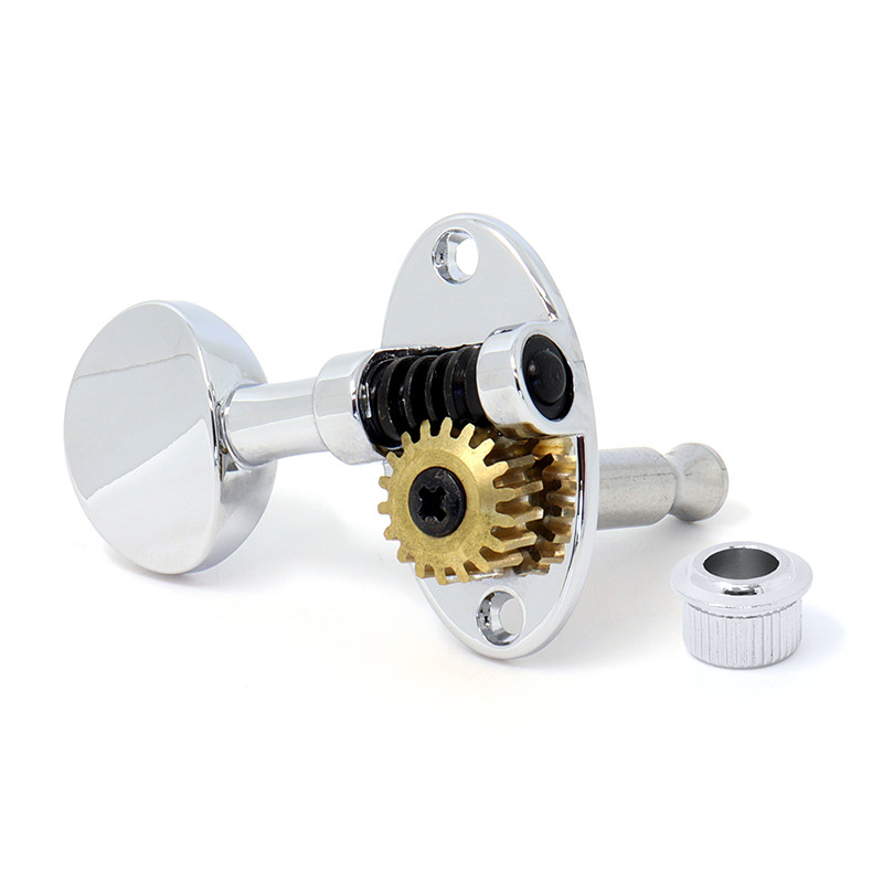 The original Roundbacks from Kluson! "Roundbacks" are closed type, maintenance-free tuners for modern 10mm pegholes. The special 18:1 gear-ratio allows for extremely smooth and precise tuning. Lowest tolerances and best manufacturing technology make the Kluson "Roundbacks" the perfect standard for modern tuning machines. for 3+3 headstocks Kidney Buttons...