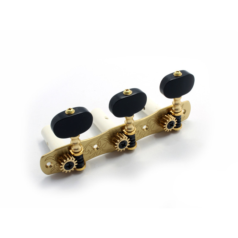 DER JUNG® MÉCANIQUES POUR GUITARE CLASSIQUE BOUTONS ET AXES NOIR GOLD -Ratio : 1:18 -Axe : S3 Classique Noir -Entre Axes : 35mm