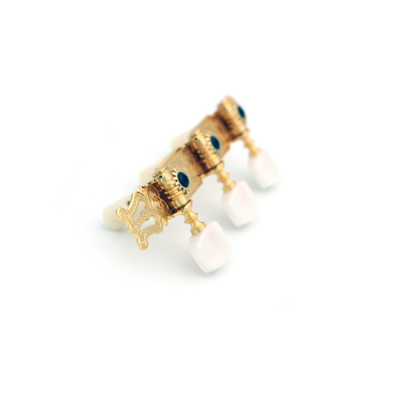 DER JUNG® MÉCANIQUES POUR GUITARE CLASSIQUE BOUTONS ET AXES IVOIRE GOLD -Ratio : 1:18 -Axe : S2 Classique Ivoire -Entre Axes : 35mm