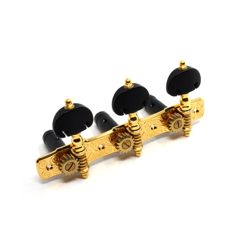 DER JUNG® MÉCANIQUES POUR GUITARE CLASSIQUE BOUTONS ET AXES NOIR GOLD -Ratio : 1:18 -Axe : S3 Classique Noir -Entre Axes : 35mm