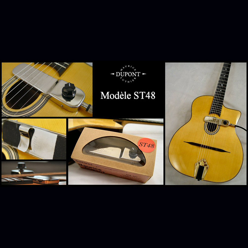 STIMER – ST48 MACCAFERRI PICKUP - Magnetic single coil pickup - Length : 140 mm - Thickness : 8 mm - Integrated volume control - Nickel-plated brass cover - Nickel-plated steel back with non-slip protection - For "grande bouche" gipsy guitars - 3m cable included