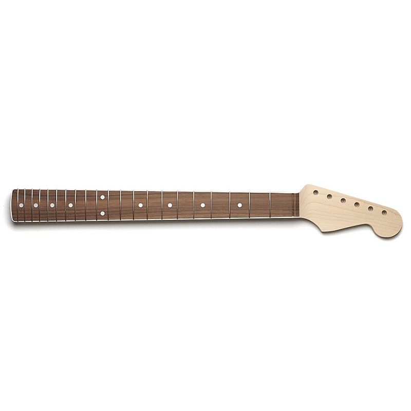ALL PARTS® NECK FOR STRAT® LBF MAPLE ROSEWOOD 21 FRETS UNFINISHED - 21 tall frets (.079” x .051”) - Classic C-shape - Rosewood fingerboard - Unfinished one-piece maple neck. - 10" radius - Classic 1-5/8" nut width - Heel width 2-3/16" - Tuning Peg Hole Diameter .340" - Truss Rod adjustment at heel. - Neck thickness .85" at first fret, .95"at twelfth fret
