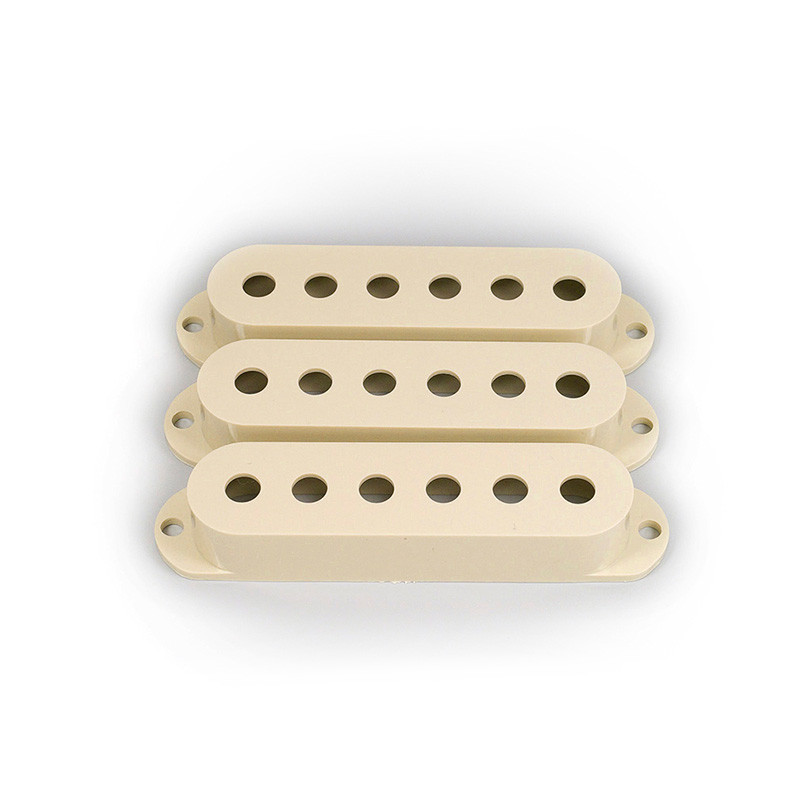 Set of three Fender® Stratocaster® pickup covers. Made for Fender and used on a variety of vintage and contemporary models. Replacement plastic pickup covers will not fit SCN™, N3™, or Noiseless™ pickups.