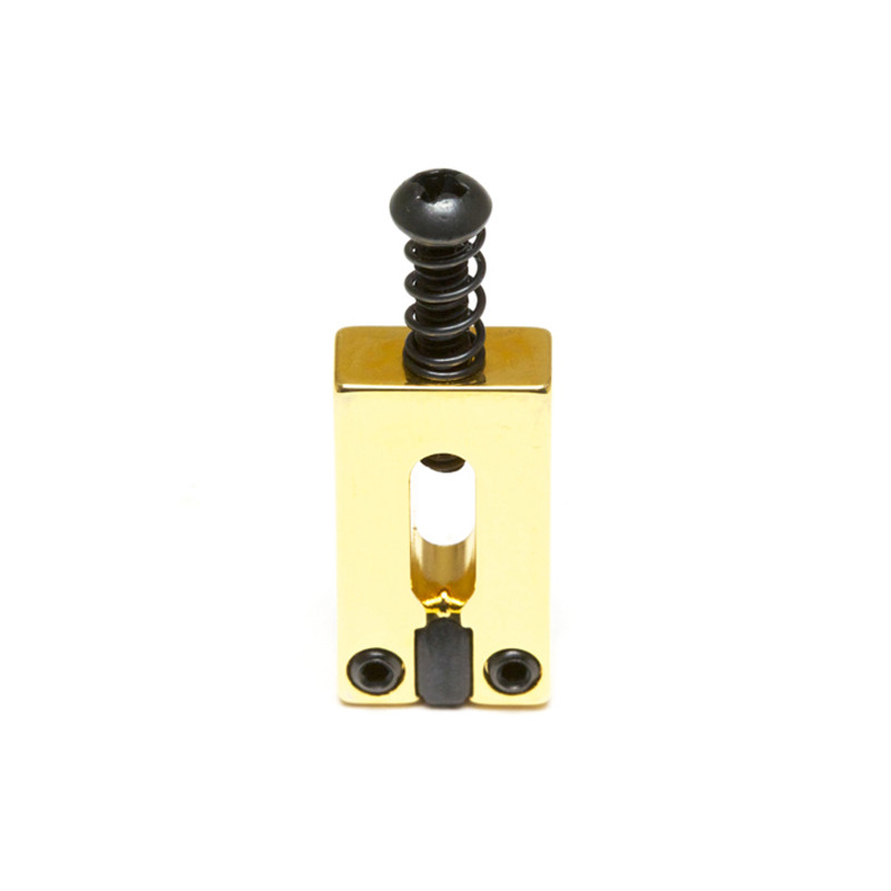 The PG8000-OG is a set of six String Saver Classics for a Strat or Tele style guitar with a 2 1/16th string spacing in gold. They have a small String Saver insert in the saddle to dramatically reduce string breakage and improve tuning stability. Included with the set is a set of slightly longer intonation screws to be used with a Telecaster.