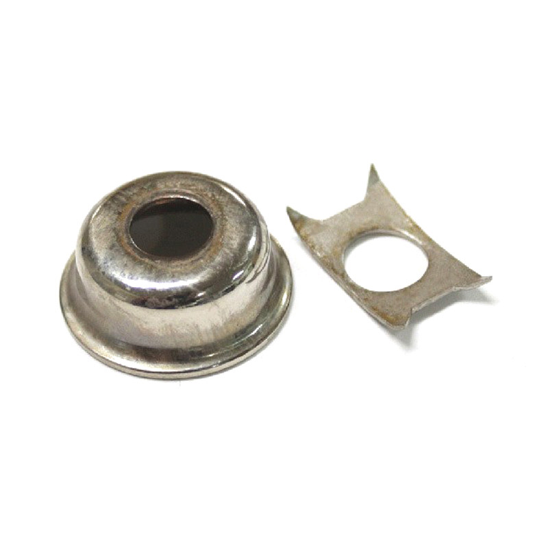 Fender® Telecaster® jack ferrule. Made for Fender® and used on a variety of vintage and contemporary models. Includes mounting retainer, nut and washer. Nickel kit does not include dress washer. Used on nearly all Telecaster® guitars (US and Mexico) manufactured '52-Present. Dimensions 0.50x4.50x5.50 IN Poids 0.20 LB